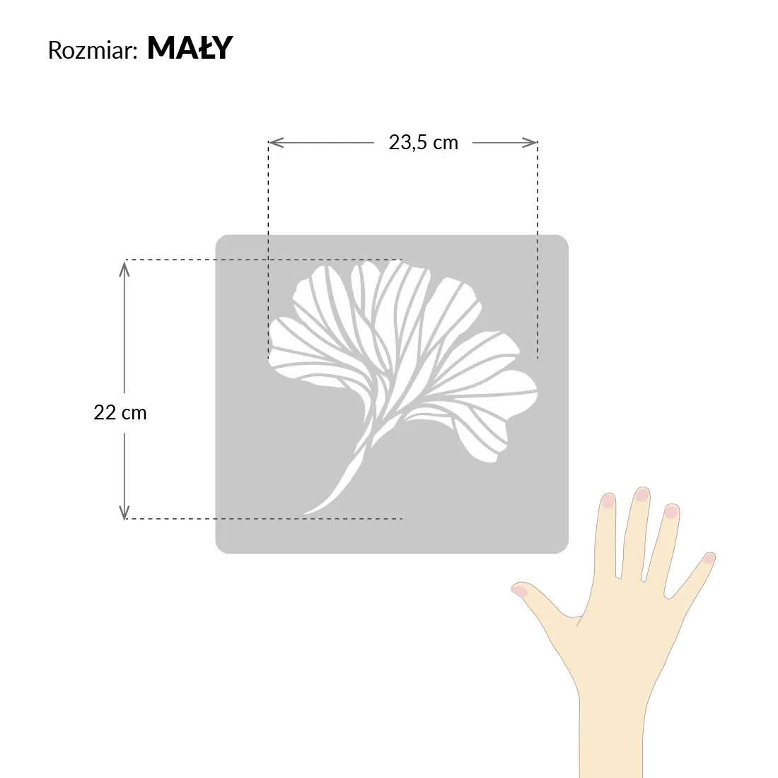 | Rozmiar odbitego wzoru: | Zestaw 3 szablonów o różnej wielkości, Duży – 56 x 54 cm, Średni – 33,5 x 32 cm, Mały – 23,5 x 22 cm |